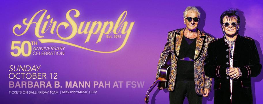 2025 will bring more seemingly nonstop rousing performances of the smash hits by their powerhouse band. Under musical direction of lead guitarist Aaron McLain, the ensemble includes Mirko Tessandori (piano/keyboards/vocals), Pavel Valdman (drums) and Doug Gild (bass). Graham and Russell will mark their milestone with exciting projects in a variety of media. These include a biopic titled All Out of Love: The Air Supply Story, a Broadway comedy-drama musical featuring their songs (Lost in Love) and an as yet to be titled autobiography by Graham and Russell. The duo will also be releasing their 18th studio album A Matter of Time, produced by Brian Howes, along with a very special vinyl compilation.