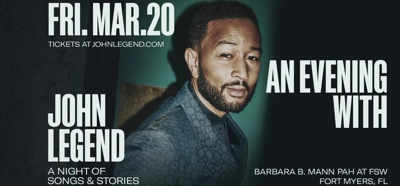 John Legend performs at Barbara B. Mann Performing Arts Hall at FSW in Fort Myers, FL on March 20, 2026!